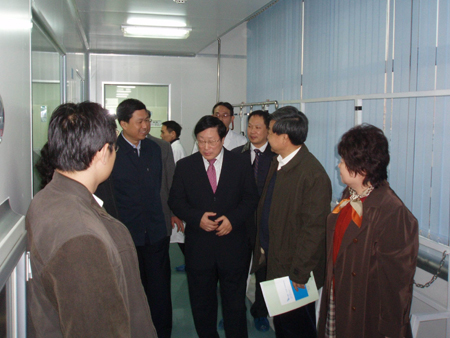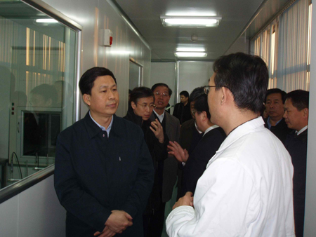????? 2007年11月20日,天津市委常委、濱海新區(qū)工委書記、濱海新區(qū)管委會(huì)主任茍利軍在南開大學(xué)校長(zhǎng)饒子和、天津市科委主任李家俊、和市經(jīng)委、市科委和濱海委有關(guān)領(lǐng)導(dǎo)同志的陪同下,蒞臨國(guó)家干細(xì)胞工程技術(shù)研究中心深入視察了干細(xì)胞研究中心、臍帶間充質(zhì)干細(xì)胞庫(kù),聽取了全國(guó)政協(xié)常委、國(guó)家干細(xì)胞工程技術(shù)研究中心主任、法國(guó)國(guó)家醫(yī)學(xué)科學(xué)院外籍院士韓忠朝教授關(guān)于國(guó)家干細(xì)胞工程技術(shù)研究中心取得的科研成果及臍帶間充質(zhì)干細(xì)胞項(xiàng)目產(chǎn)業(yè)化發(fā)展情況的匯報(bào)。