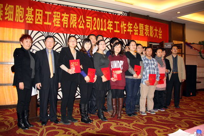 2011年12月30日上午10時,天津昂賽細胞基因工程有限公司2011年度總結(jié)大會于天津市濱海新區(qū)惠中酒店一樓宴會廳隆重召開。出席會議的有昂賽公司總經(jīng)理韓忠朝、副總經(jīng)理、行政總監(jiān)盛滬寧、項目總監(jiān)潘爾勤、以及公司各部門負責人和全體員工。會議在昂賽公司行政總監(jiān)盛滬寧的主持下拉開帷幕。